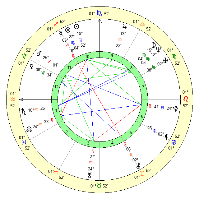 | Moon | 15 Virgo 2 | 26 Leo 17 | 5 Aquarius 9 |