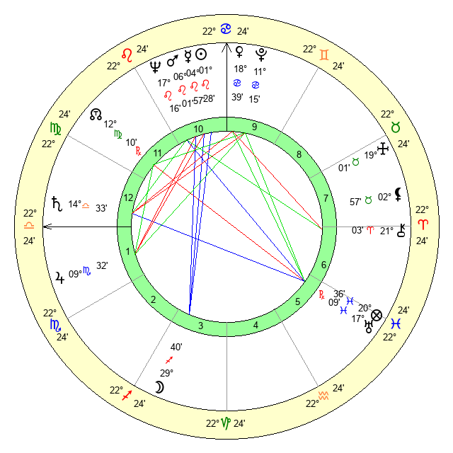 | Moon | 29 Sagittarius 37 | 11 Leo 3 | 13 Virgo 9 |