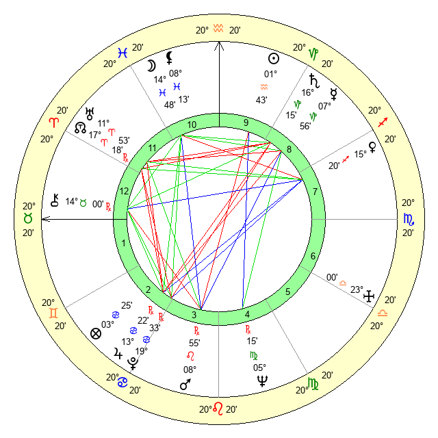 | Moon | 14 Pisces 49 | 12 Scorpio 2 | 20 Leo 29 |