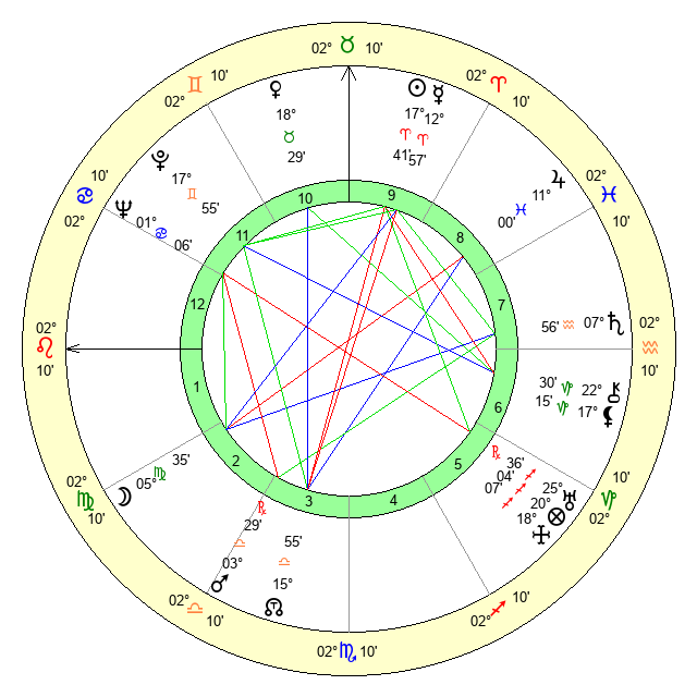 | Sun | 17 Aries 41 | 19 Aries 6 | 14 Leo 57 |