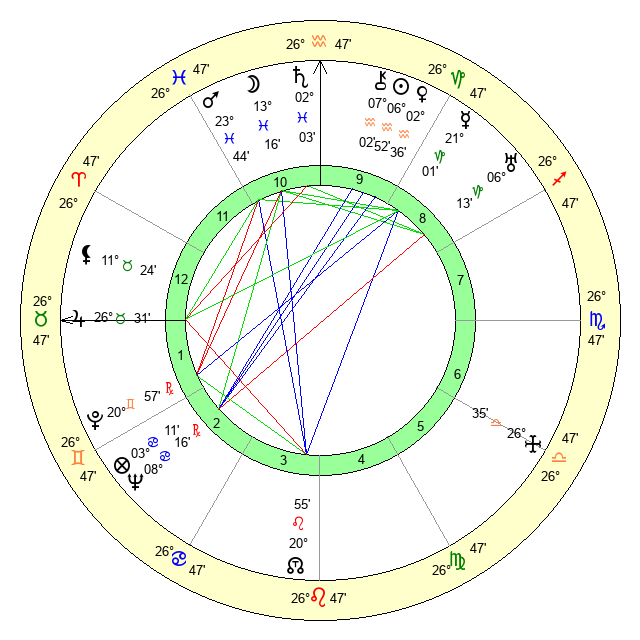 | Saturn | 2 Pisces 29 | 16 Pisces 54 | 14 Pisces 42 |