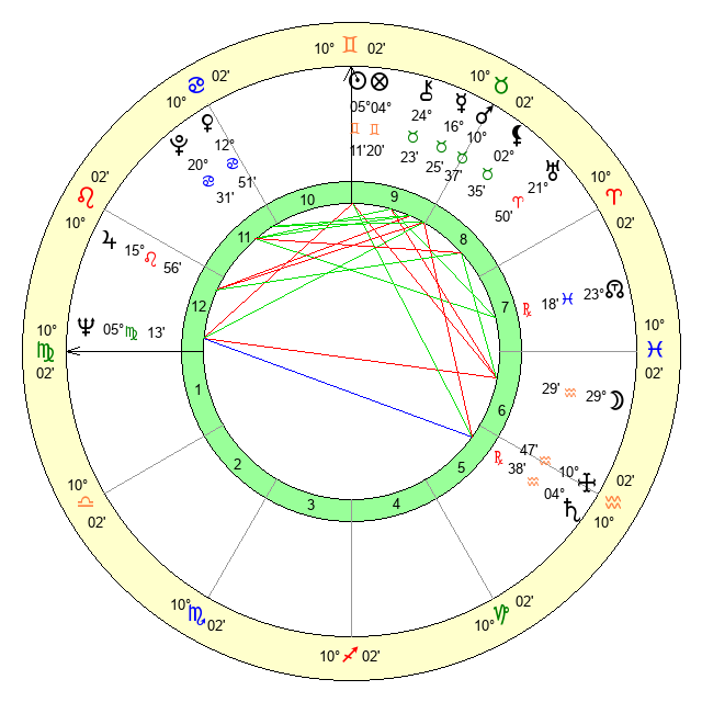 | Sun | 5 Gemini 12 | 5 Gemini 42 | 4 Virgo 11 |