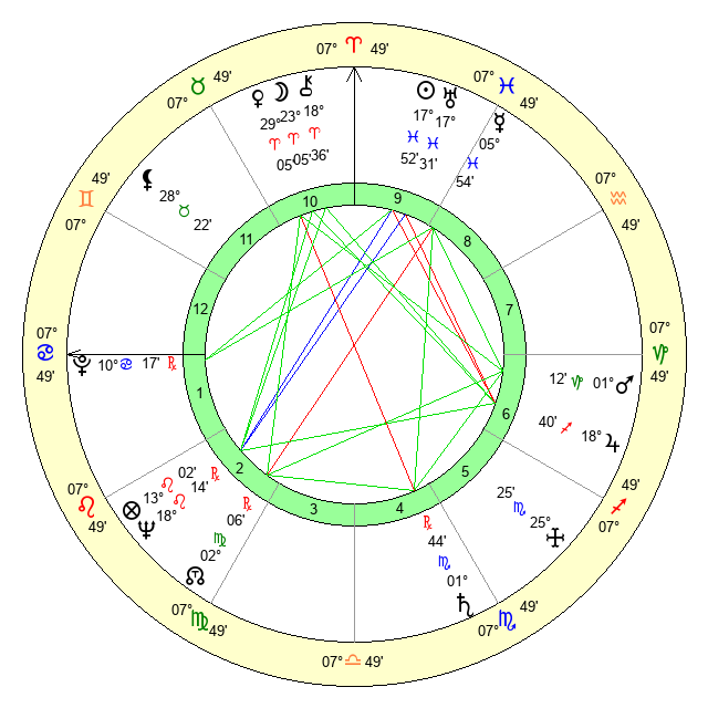 | Pluto | 10 Cancer 17 | 3 Aquarius 5 | 11 Cancer 29 |
