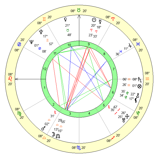 | Sun | 20 Aries 23 | 21 Aries 48 | 17 Leo 35 |