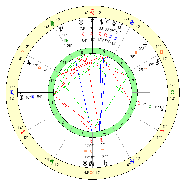 | Moon | 18 Scorpio 1 | 14 Gemini 37 | 27 Pisces 26 |