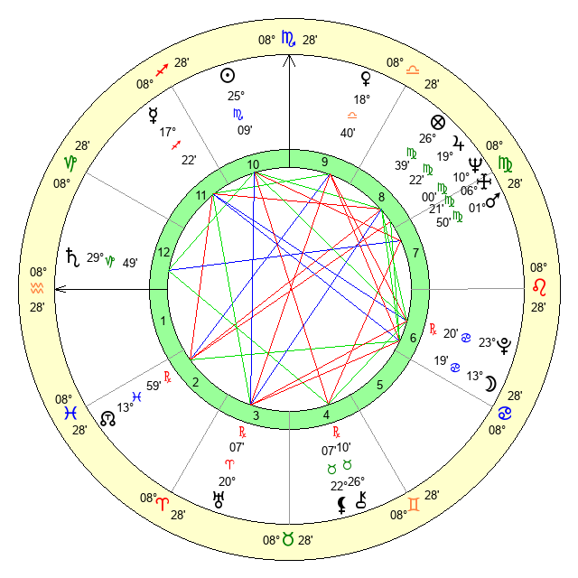 | Mars | 1 Virgo 50 | 9 Sagittarius 31 | 15 Virgo 1 |