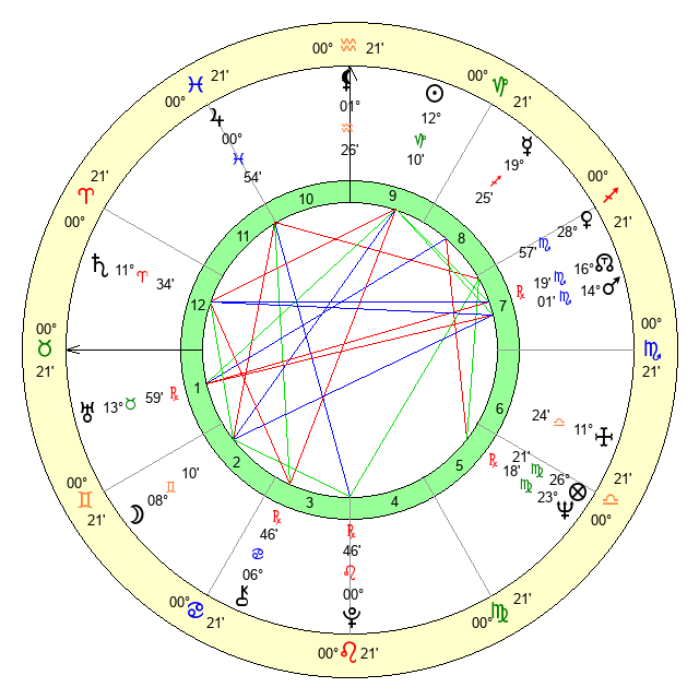 | Venus | 28 Scorpio 57 | 0 Pisces 20 | 28 Aquarius 56 |