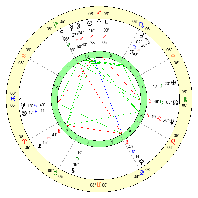 | Moon | 24 Sagittarius 39 | 8 Leo 12 | 9 Virgo 28 |