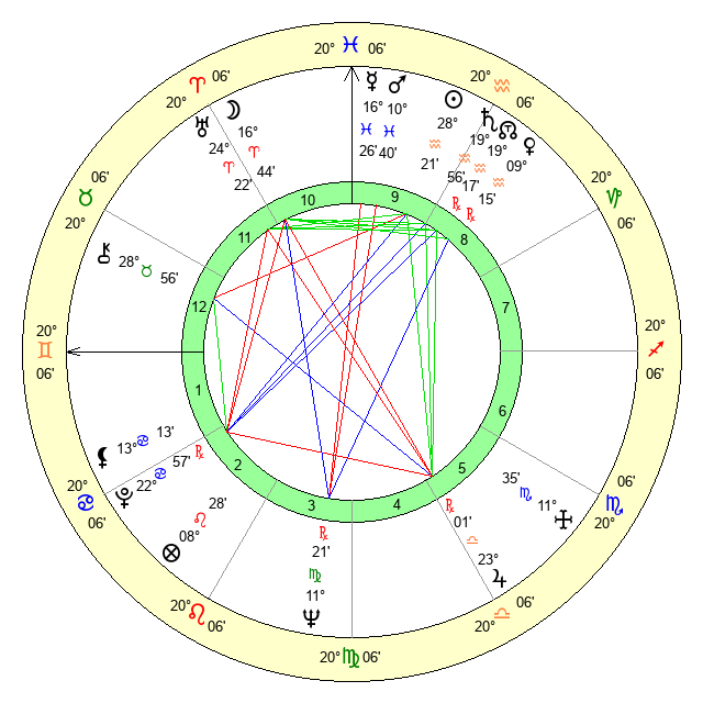 | Mercury | 16 Pisces 26 | 5 Pisces 55 | 5 Gemini 52 |
