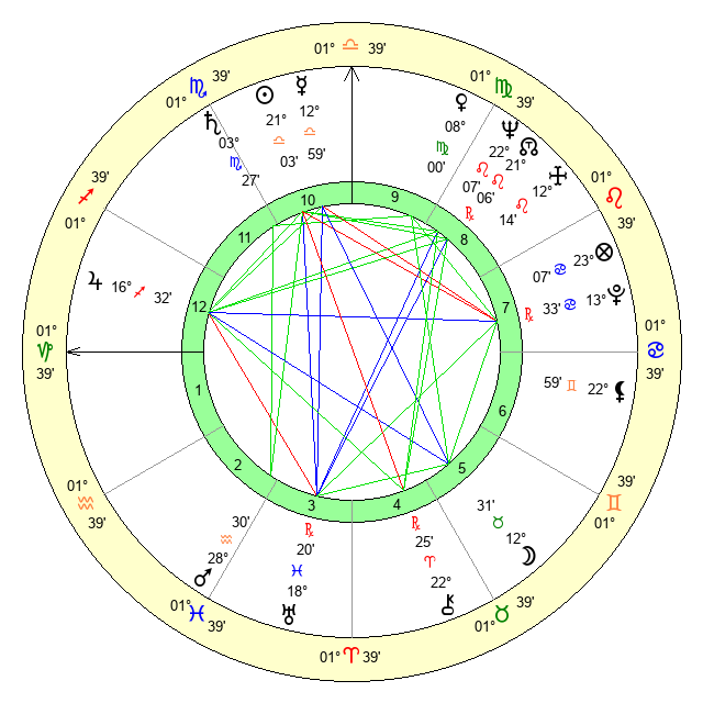 | Saturn | 3 Scorpio 59 | 26 Pisces 40 | 14 Scorpio 6 |
