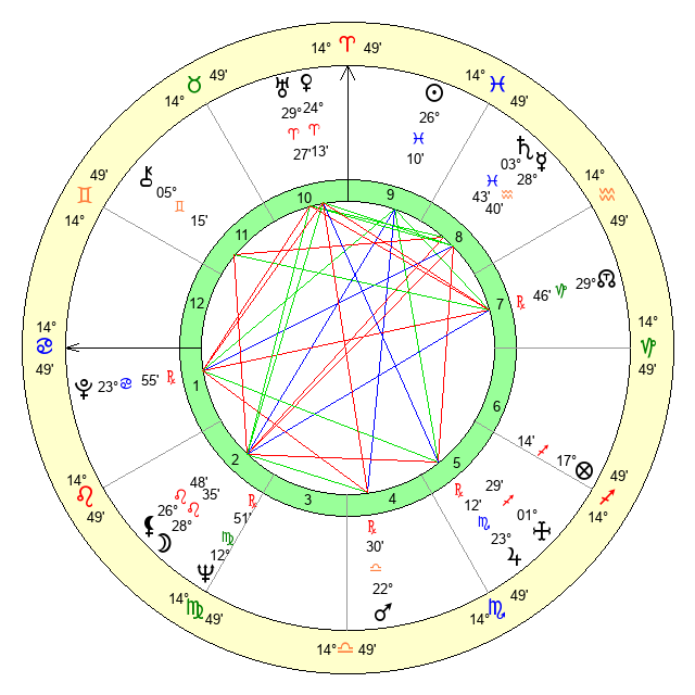 | Pluto | 23 Cancer 54 | 3 Aquarius 17 | 24 Cancer 44 |