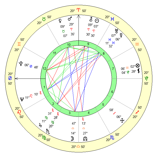 | Neptune | 11 Leo 10 | 29 Pisces 47 | 12 Leo 22 |