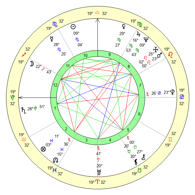 | Neptune | 9 Virgo 43 | 29 Pisces 46 | 9 Virgo 28 |