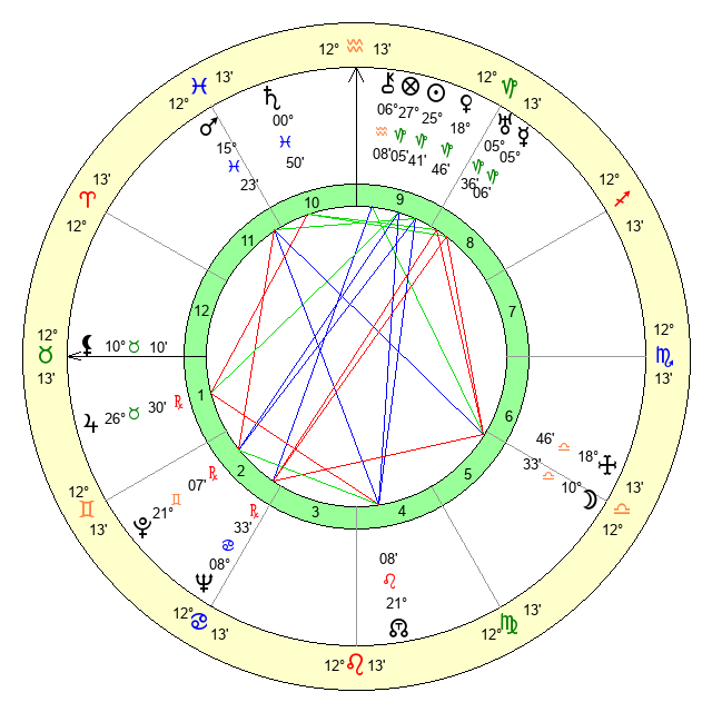 | Mars | 15 Pisces 23 | 25 Cancer 58 | 11 Gemini 43 |