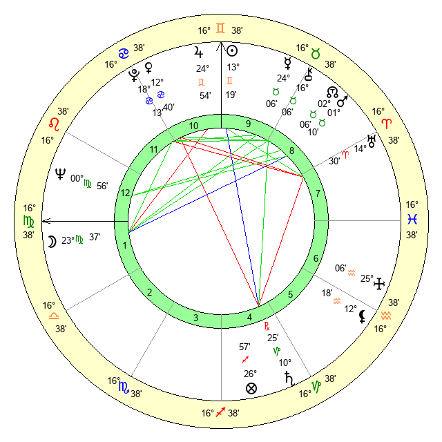 | Sun | 13 Gemini 20 | 14 Gemini 19 | 14 Virgo 20 |