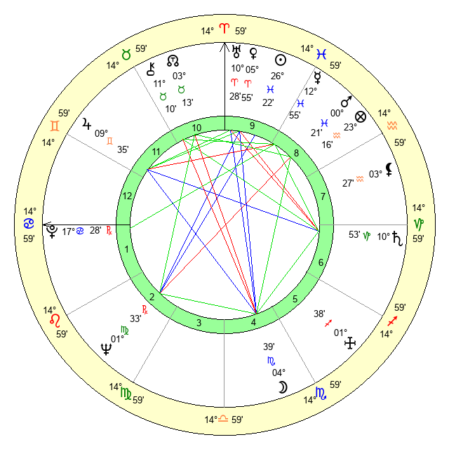 | Neptune | 1 Virgo 34 | 29 Pisces 31 | 1 Virgo 12 |