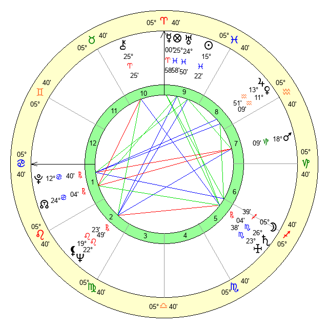 | Mercury | 0 Aries 59 | 4 Aries 25 | 2 Cancer 40 |