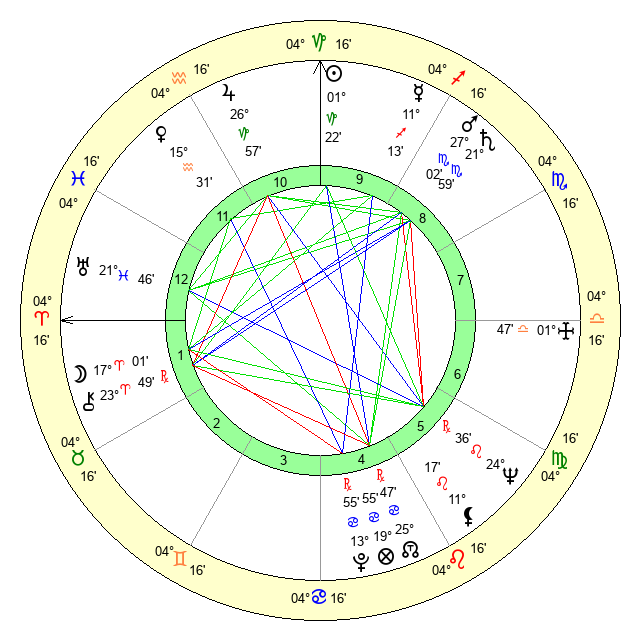 | Moon | 17 Aries 1 | 10 Libra 44 | 19 Scorpio 39 |