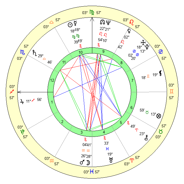 | Saturn | 0 Scorpio 19 | 29 Pisces 7 | 11 Scorpio 41 |