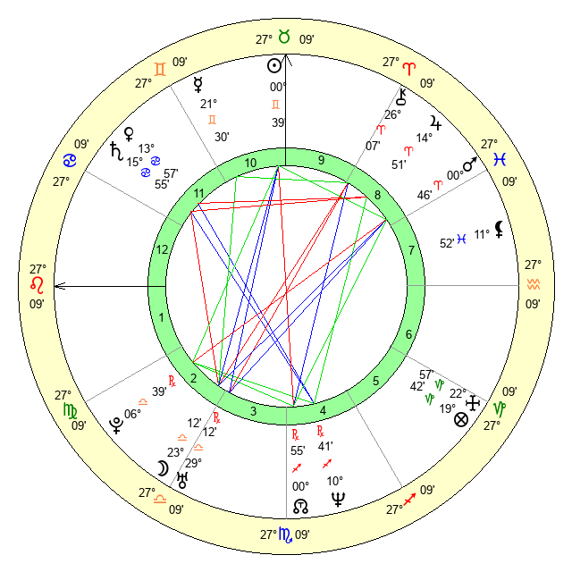 | Moon | 23 Libra 15 | 25 Pisces 35 | 18 Leo 23 |