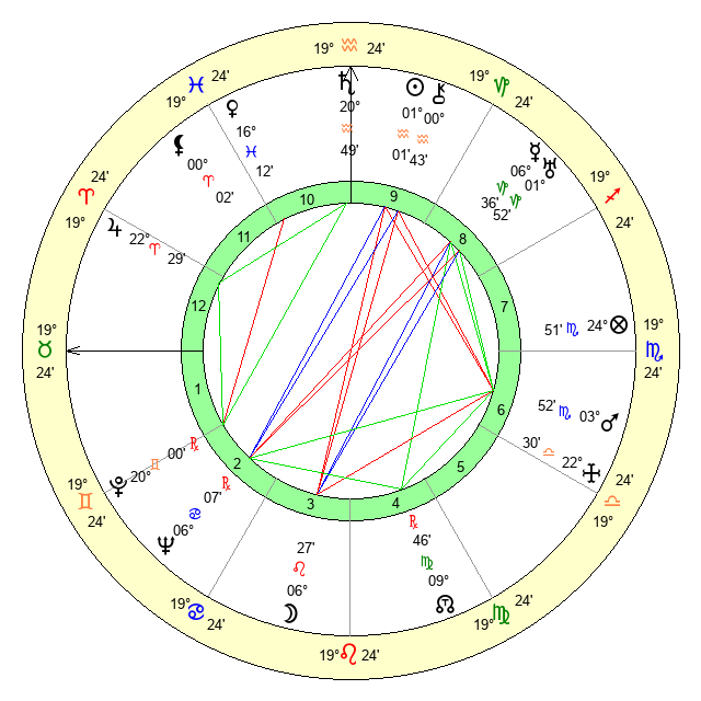 | Moon | 6 Leo 21 | 0 Scorpio 12 | 7 Capricorn 35 |