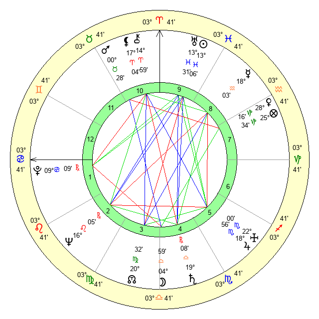 | Mars | 0 Taurus 29 | 17 Cancer 28 | 9 Cancer 43 |