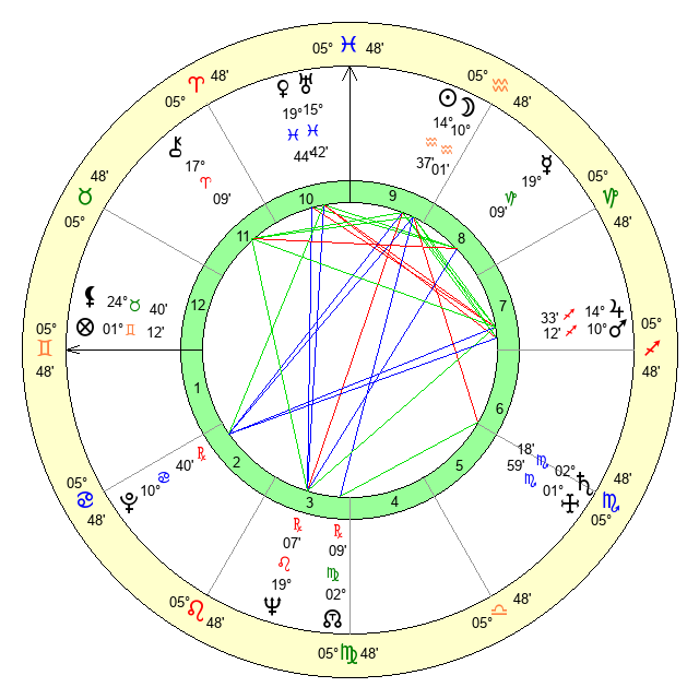 | Jupiter | 14 Sagittarius 21 | 11 Gemini 16 | 17 Sagittarius 20 |