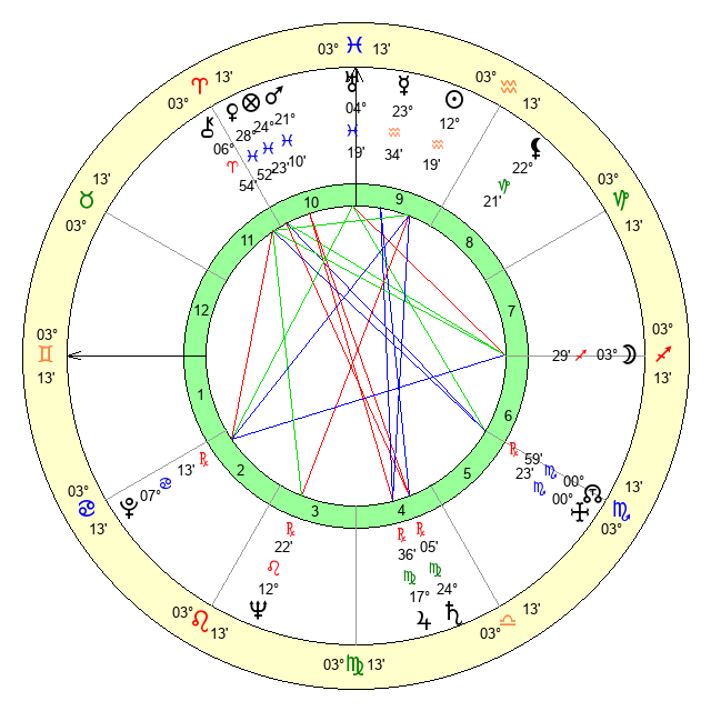 | Mars | 21 Pisces 10 | 20 Cancer 16 | 7 Gemini 24 |