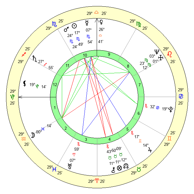 | Neptune | 3 Virgo 24 | 29 Pisces 36 | 2 Virgo 24 |