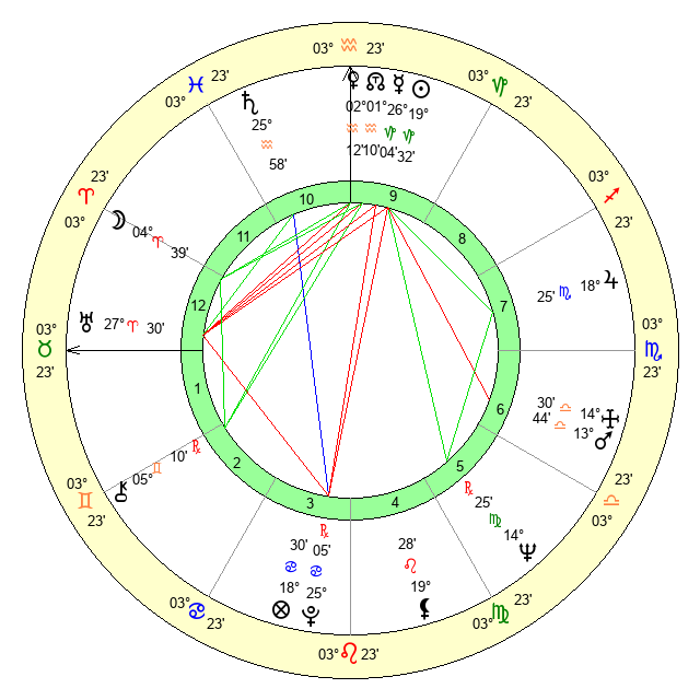 | Uranus | 27 Aries 30 | 23 Taurus 27 | 0 Taurus 45 |