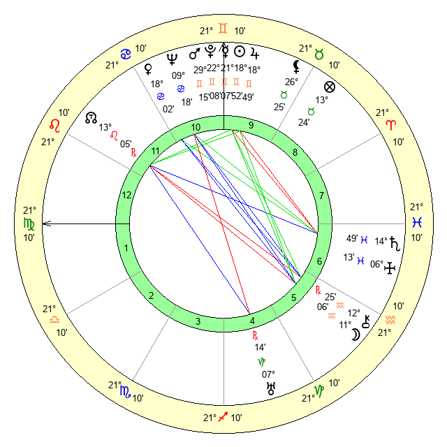 | Sun | 18 Gemini 53 | 20 Gemini 4 | 13 Libra 31 |