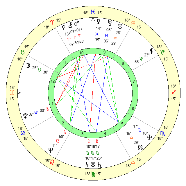 | Mars | 1 Aries 53 | 17 Cancer 28 | 17 Gemini 2 |