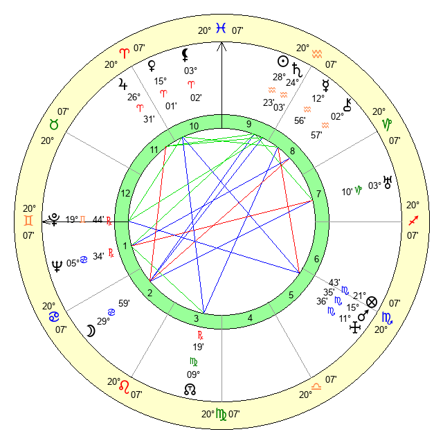| Sun | 28 Aquarius 23 | 29 Aquarius 17 | 25 Gemini 48 |