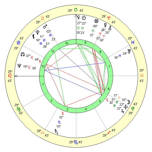 | Saturn | 10 Scorpio 44 | 28 Pisces 58 | 9 Scorpio 29 |