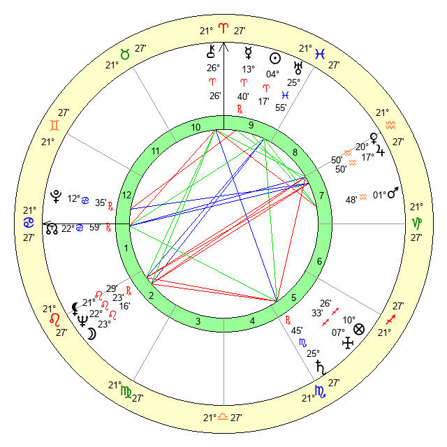 | Moon | 23 Leo 13 | 14 Aquarius 24 | 12 Aries 10 |