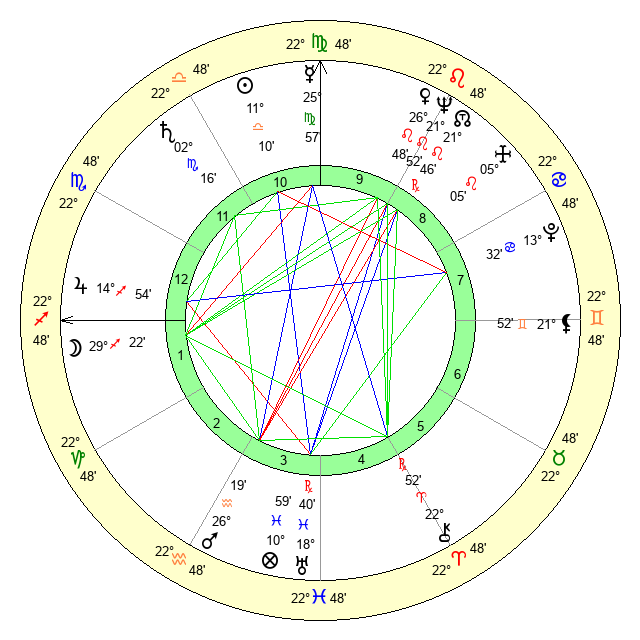 | Moon | 29 Sagittarius 16 | 8 Pisces 37 | 2 Virgo 37 |