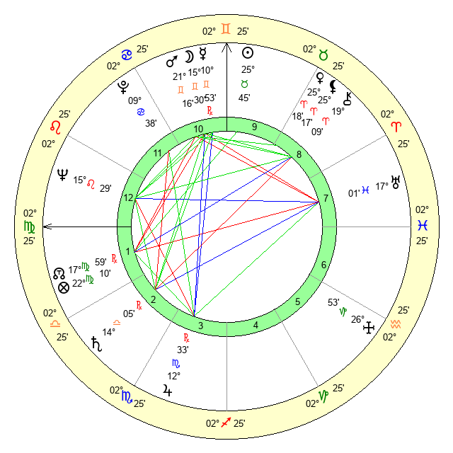 | Sun | 25 Taurus 45 | 27 Taurus 2 | 3 Virgo 23 |