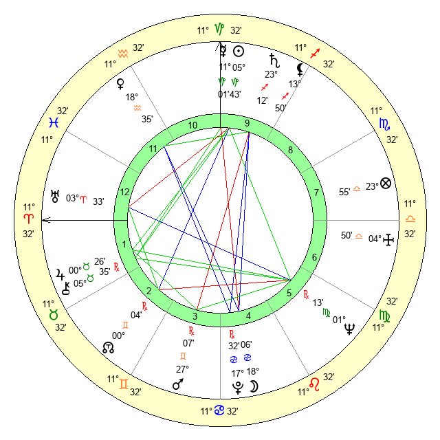| Saturn | 23 Sagittarius 32 | 14 Pisces 9 | 0 Capricorn 48 |