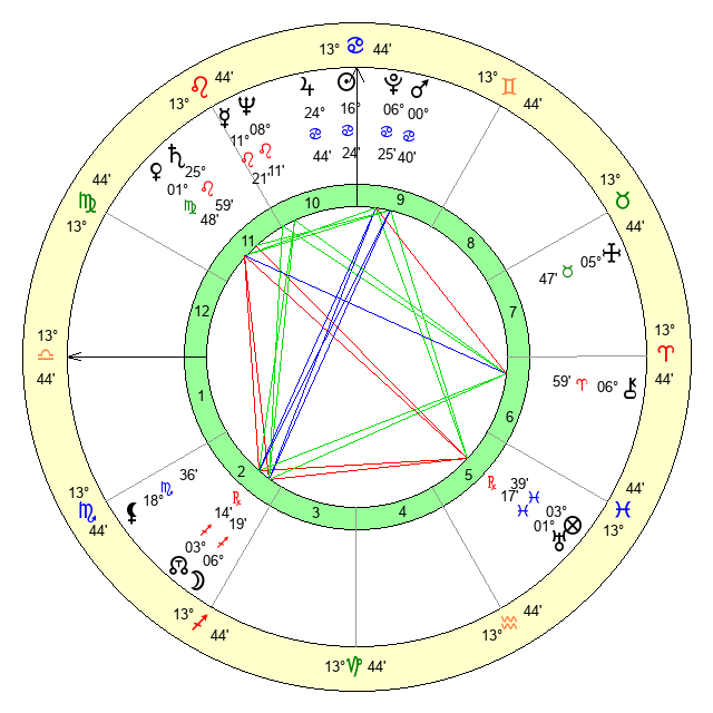 | Mars | 0 Cancer 40 | 12 Virgo 52 | 8 Virgo 10 |