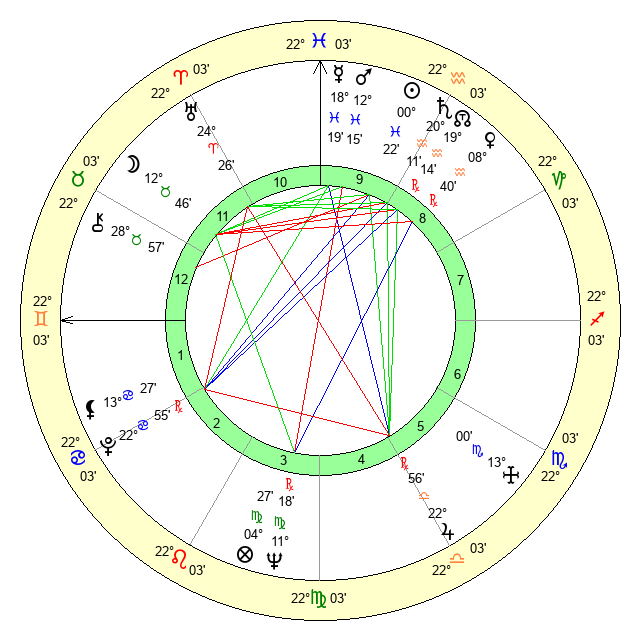 | Jupiter | 22 Libra 39 | 11 Gemini 40 | 13 Libra 33 |