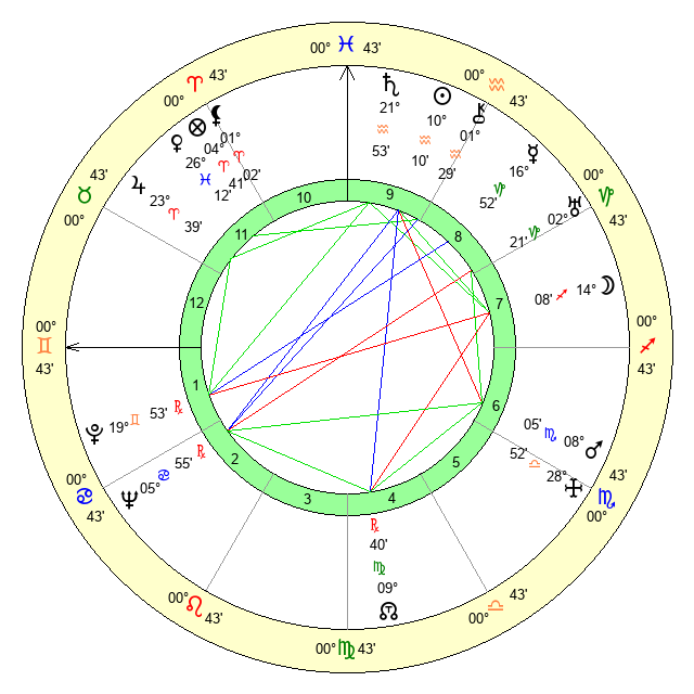 | Moon | 14 Sagittarius 7 | 26 Aquarius 25 | 28 Aries 35 |