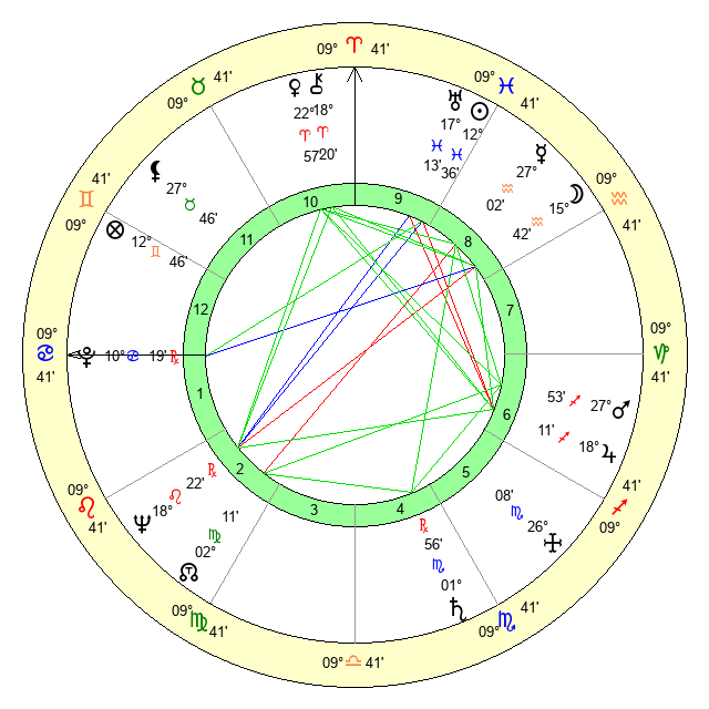 | Venus | 22 Aries 57 | 10 Aries 48 | 17 Cancer 27 |