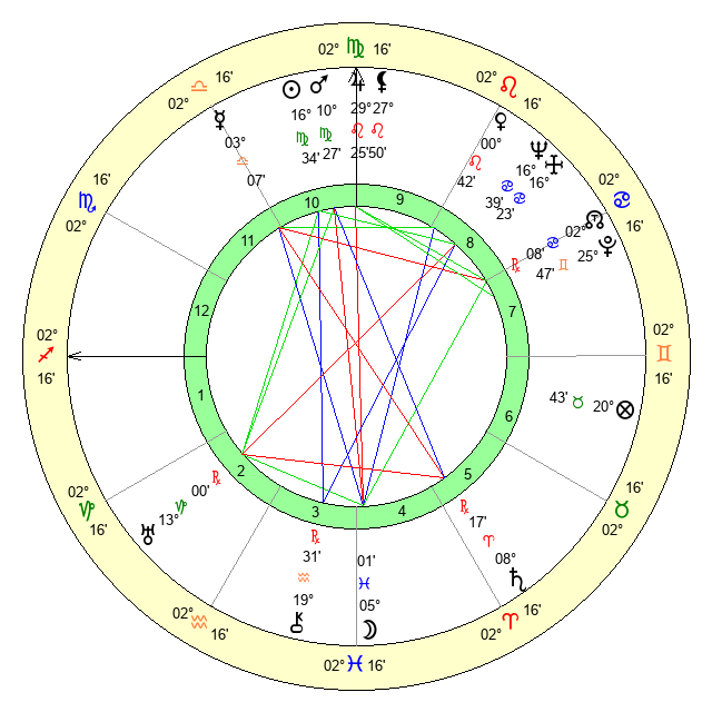 | Sun | 16 Virgo 35 | 17 Virgo 16 | 13 Capricorn 44 |