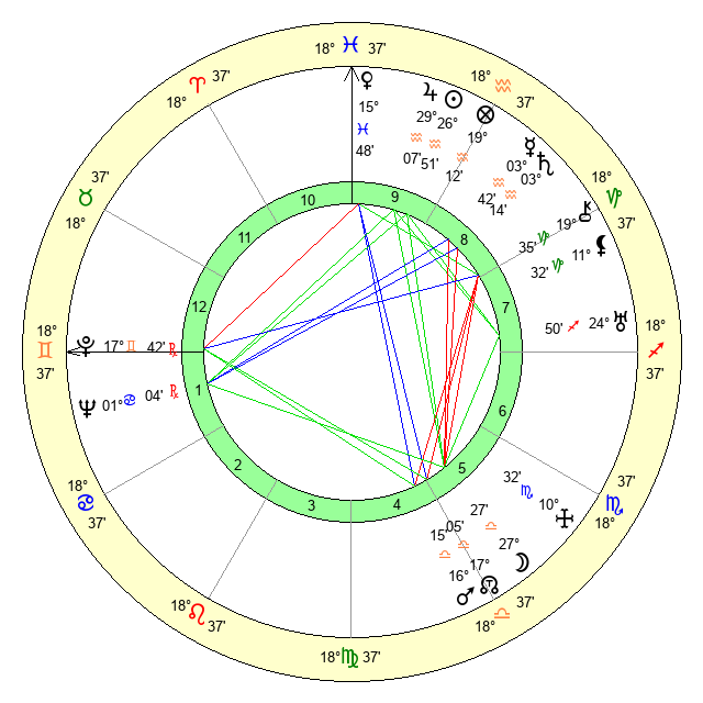 | Sun | 26 Aquarius 52 | 28 Aquarius 16 | 26 Gemini 15 |