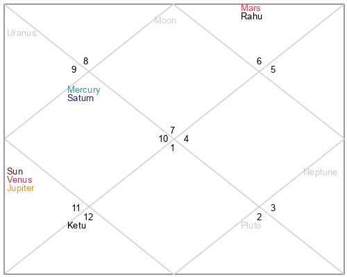 | Rahu | 18 Libra 41 | 29 Pisces 1 | 12 Libra 14 |