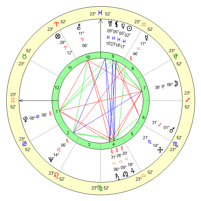 | Saturn | 7 Libra 15 | 19 Pisces 44 | 1 Libra 30 |