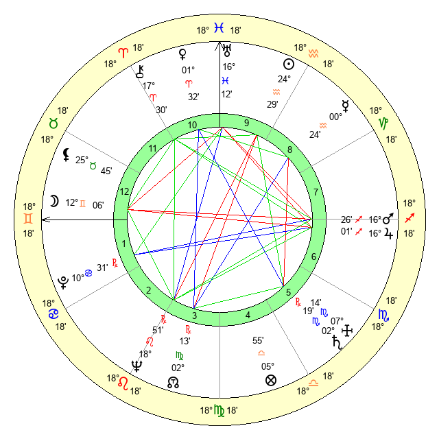 | Moon | 12 Gemini 2 | 17 Virgo 22 | 2 Pisces 18 |