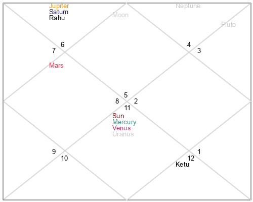 | Rahu | 11 Libra 21 | 29 Pisces 10 | 5 Libra 54 |