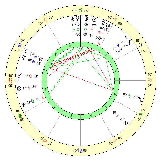 | Mars | 5 Leo 45 | 0 Leo 13 | 23 Virgo 20 |