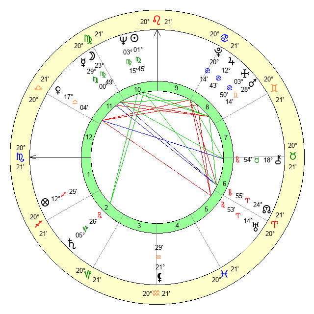 | Moon | 23 Virgo 44 | 1 Libra 26 | 10 Pisces 40 |